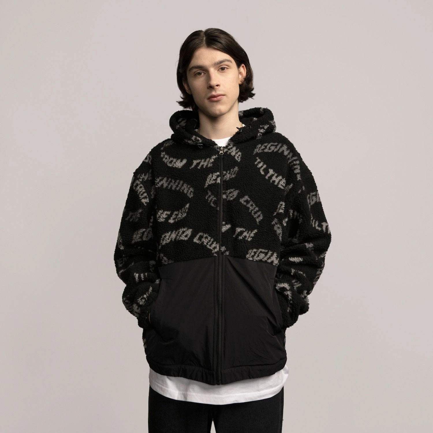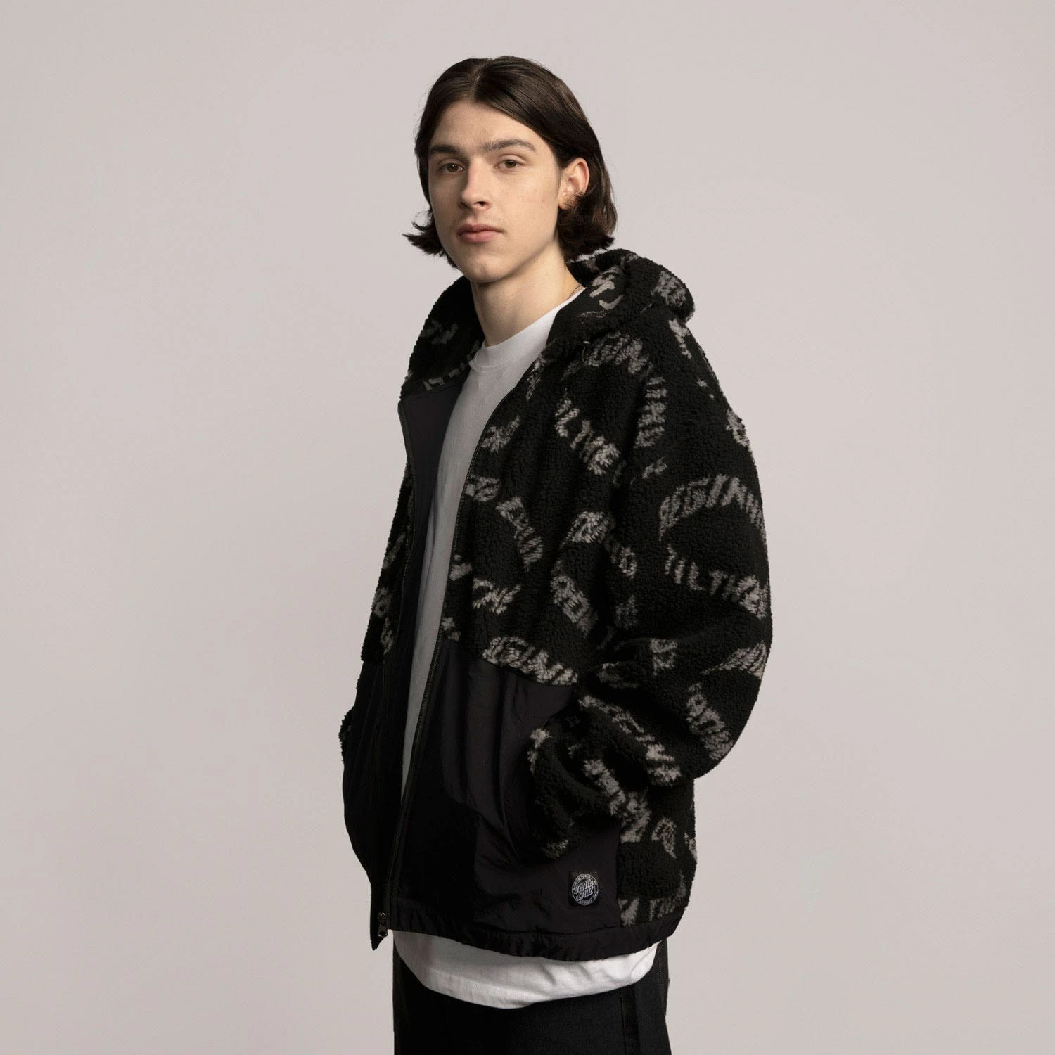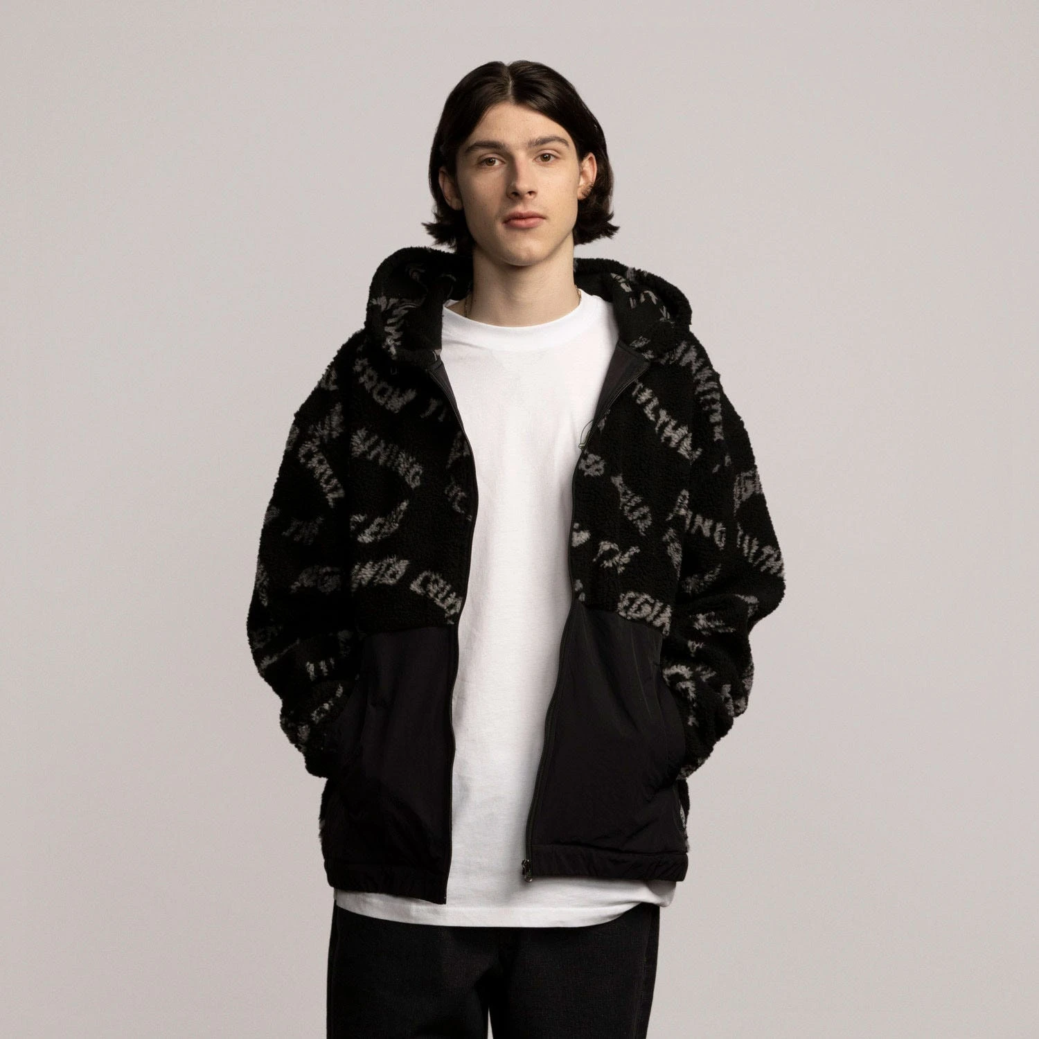 100% polyester, jacquard polar fleece, regular fit, hooded jacket with 100% nylon, oversized pockets at front, elastic binding at cuff, zip front entry and front woven label