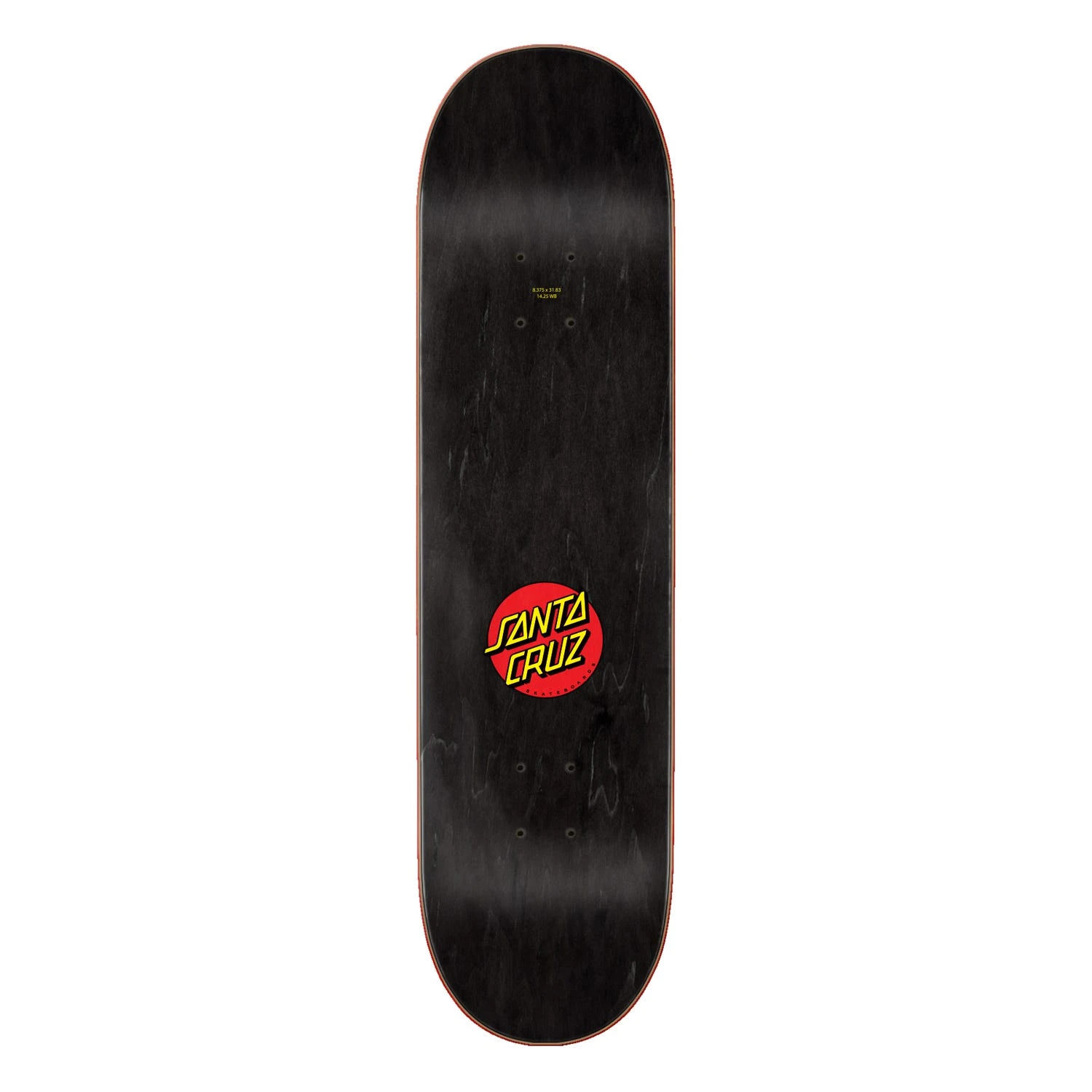 Santa Cruz Skateboards Classic Dot Series deck on new 3D concave. 3D concave features a medium depth concave with lower, continuous nose and tail kick, plus concave in the nose in tail that combine to create pockets to lock in your feet. 7 ply North American Maple pressed individually using epoxy making a strong, responsive deck with long lasting pop and consistent concave and kick, topped off with our signature matte finish.