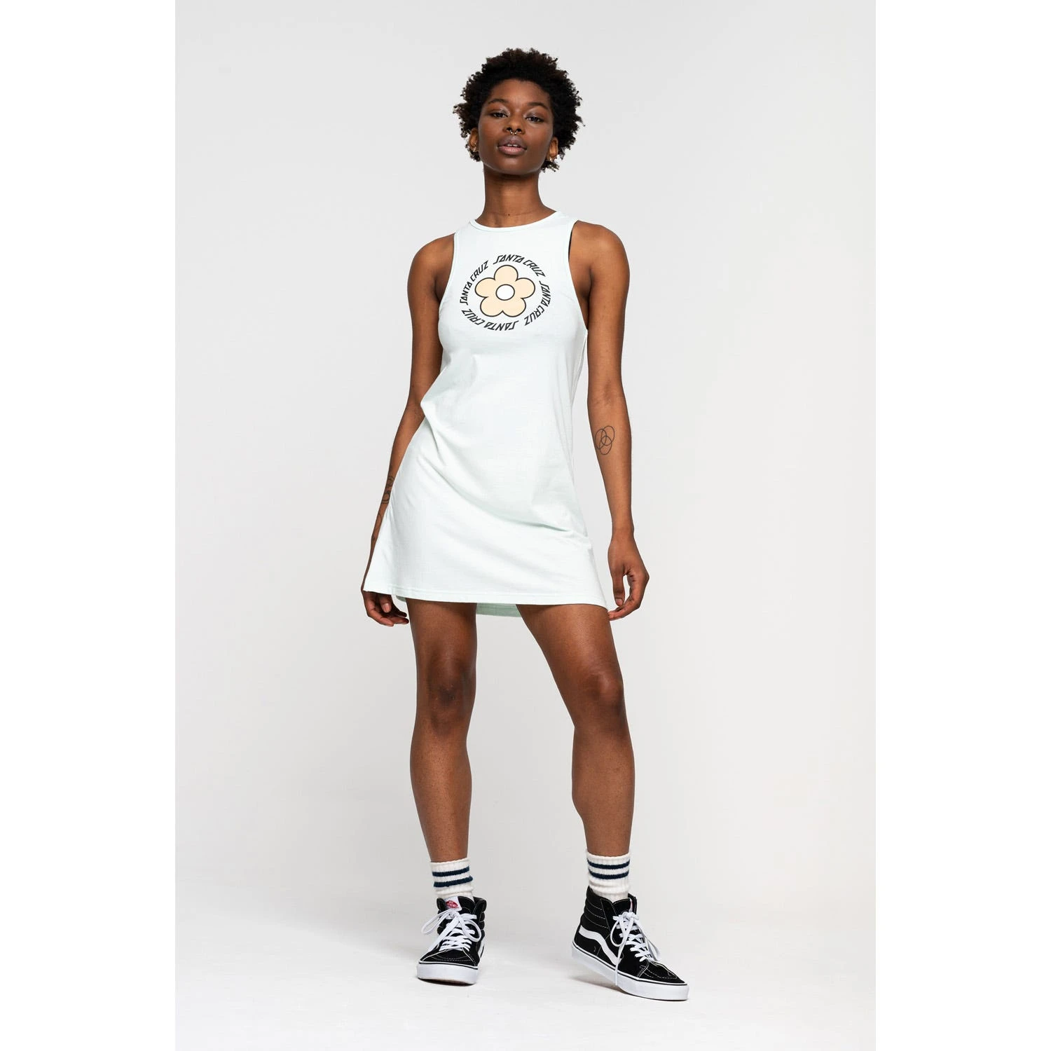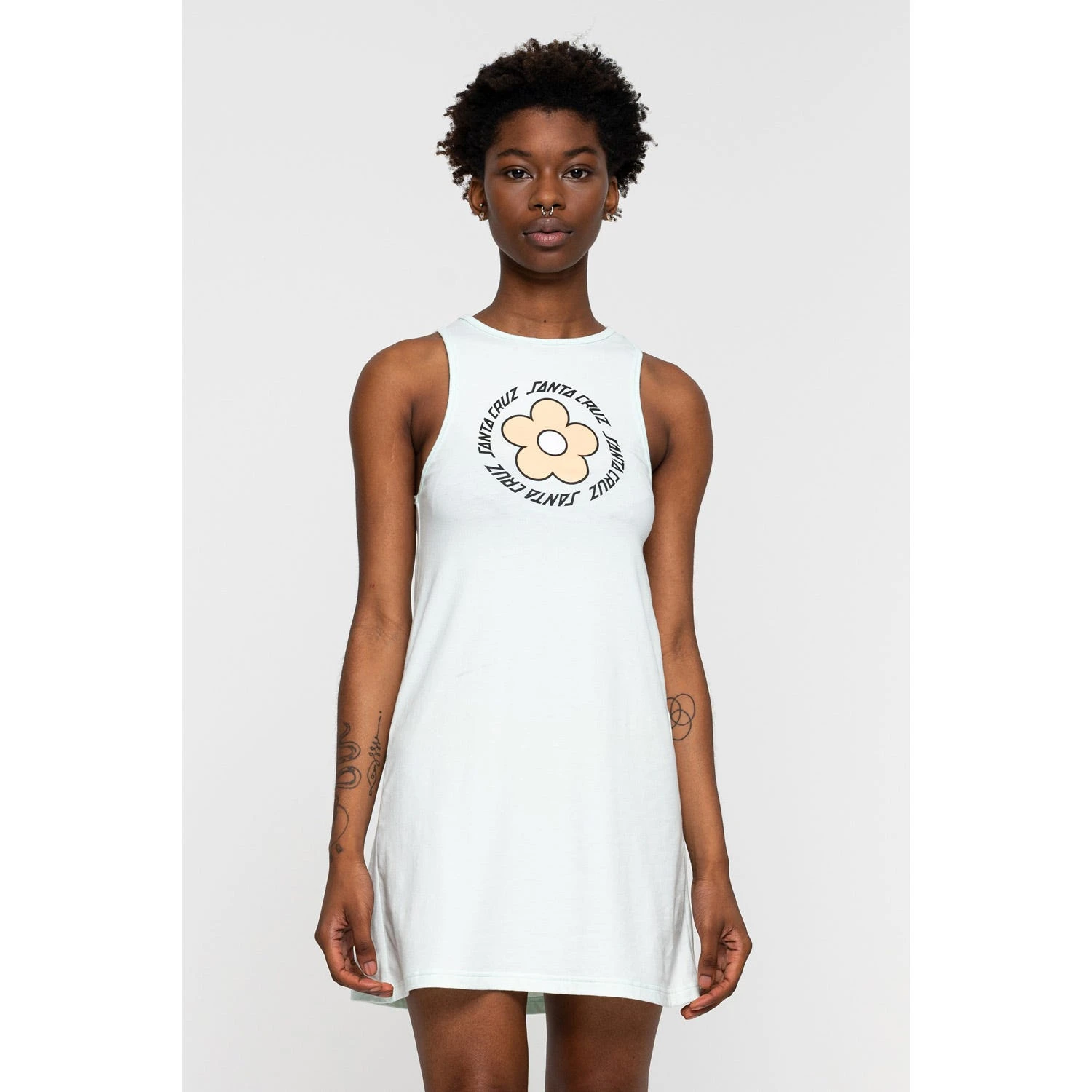 95% cotton, 5% elastane, 200gsm jersey, sleeveless dress with front print