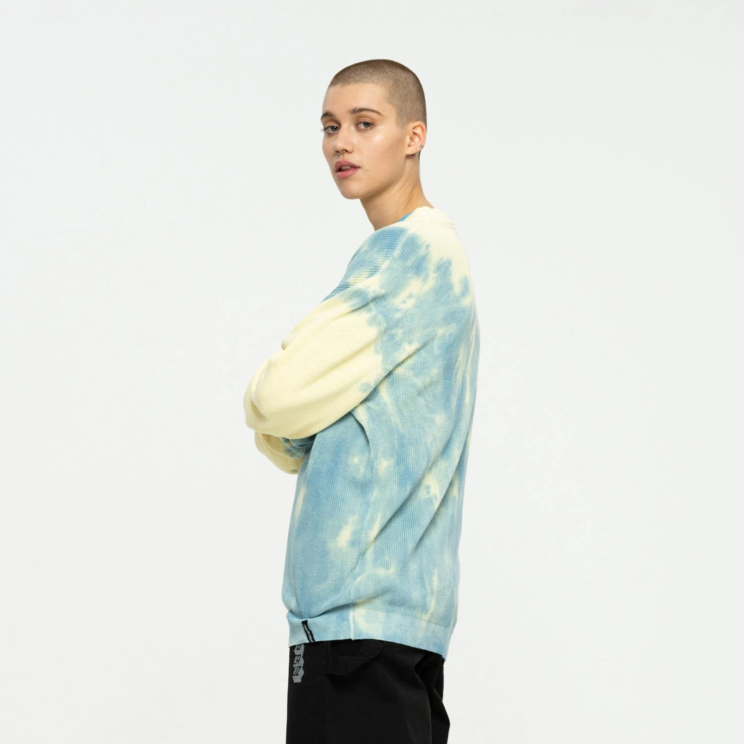100% organic cotton knit crew sweatshirt with woven label at hem