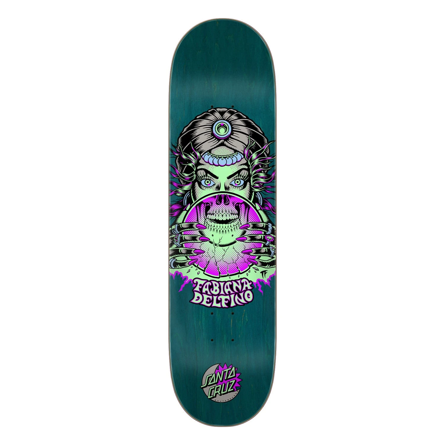 Santa Cruz Skateboards Fabiana Delfino Fortune Teller Glow VX Deck featuring glow-in-the-dark spot gloss graphic art by Thomas Fernández @liveradstudios.