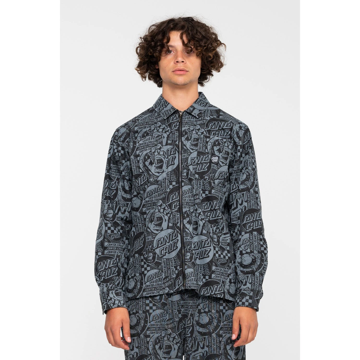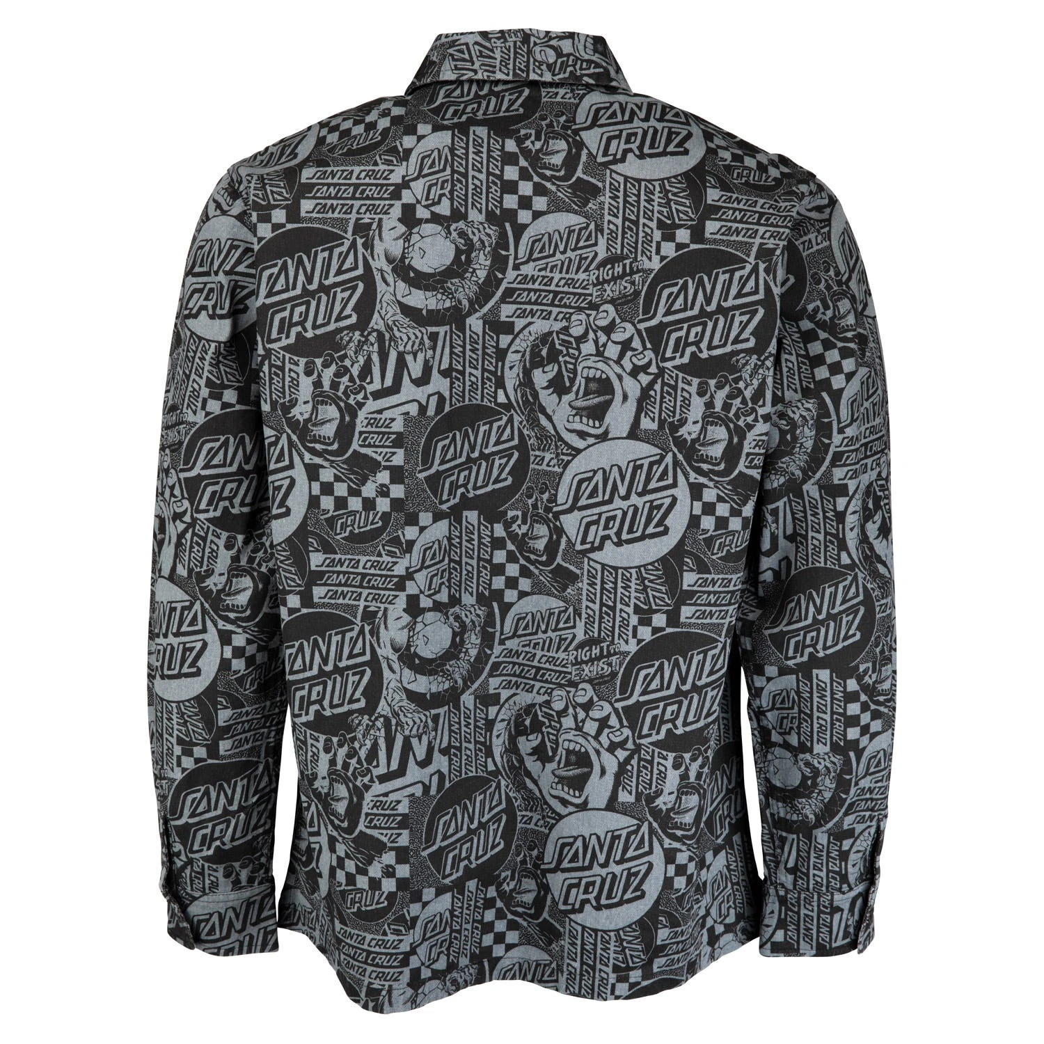 100% cotton twill, long sleeve shirt, button-up with twin chest pockets, curved hem, allover print and front woven label