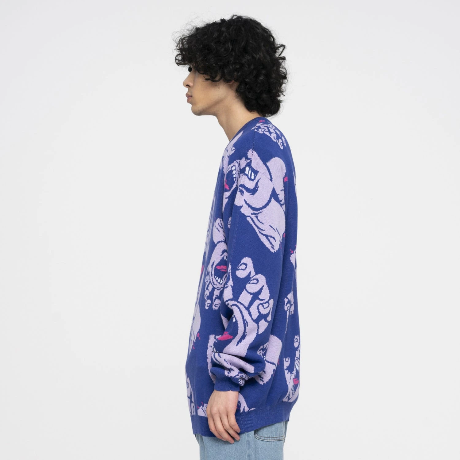 100% cotton knitted crew, regular fit, with all over jacquard and front woven label