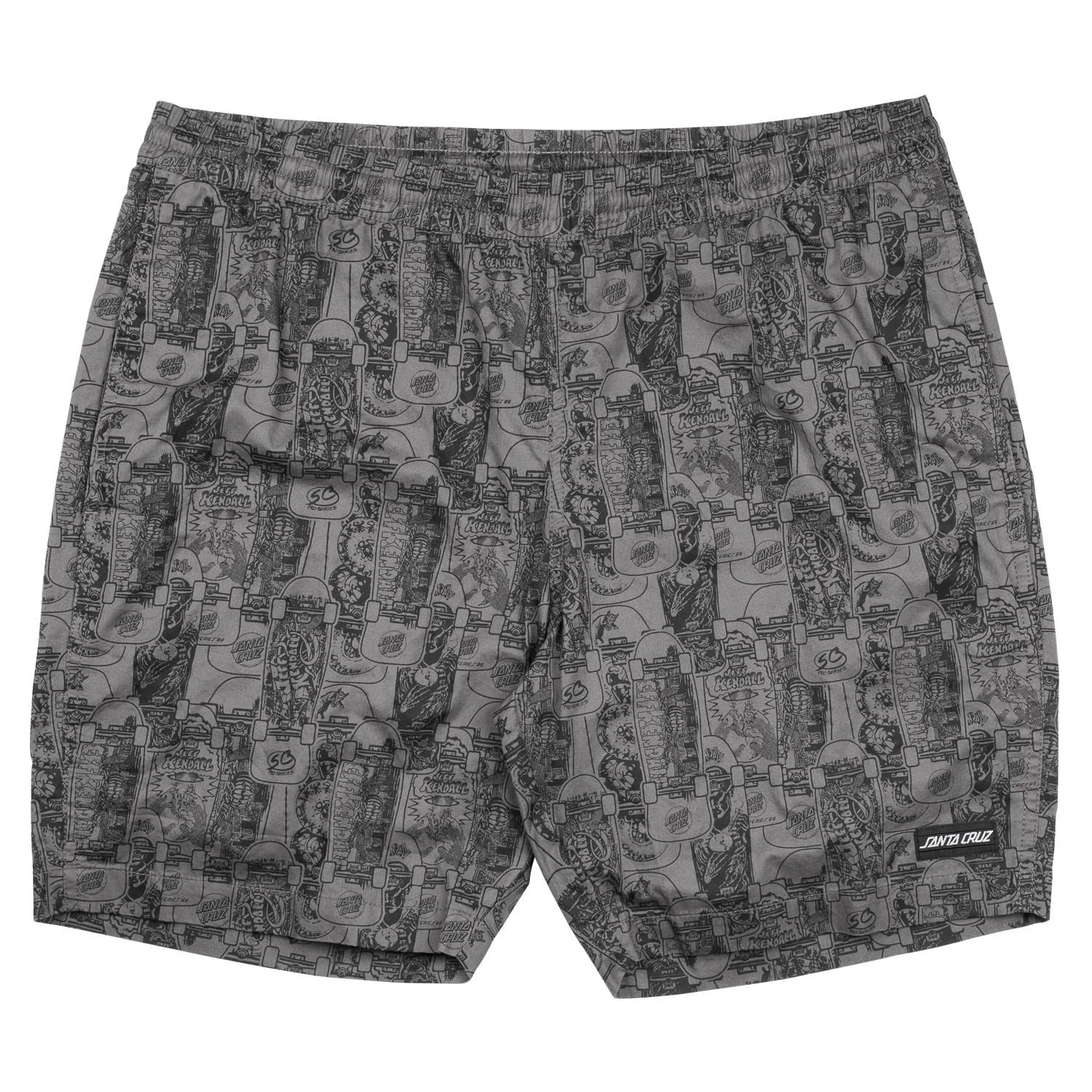 100% cotton poplin beach shorts with elasticated waist, side and back pockets. all-over print pattern