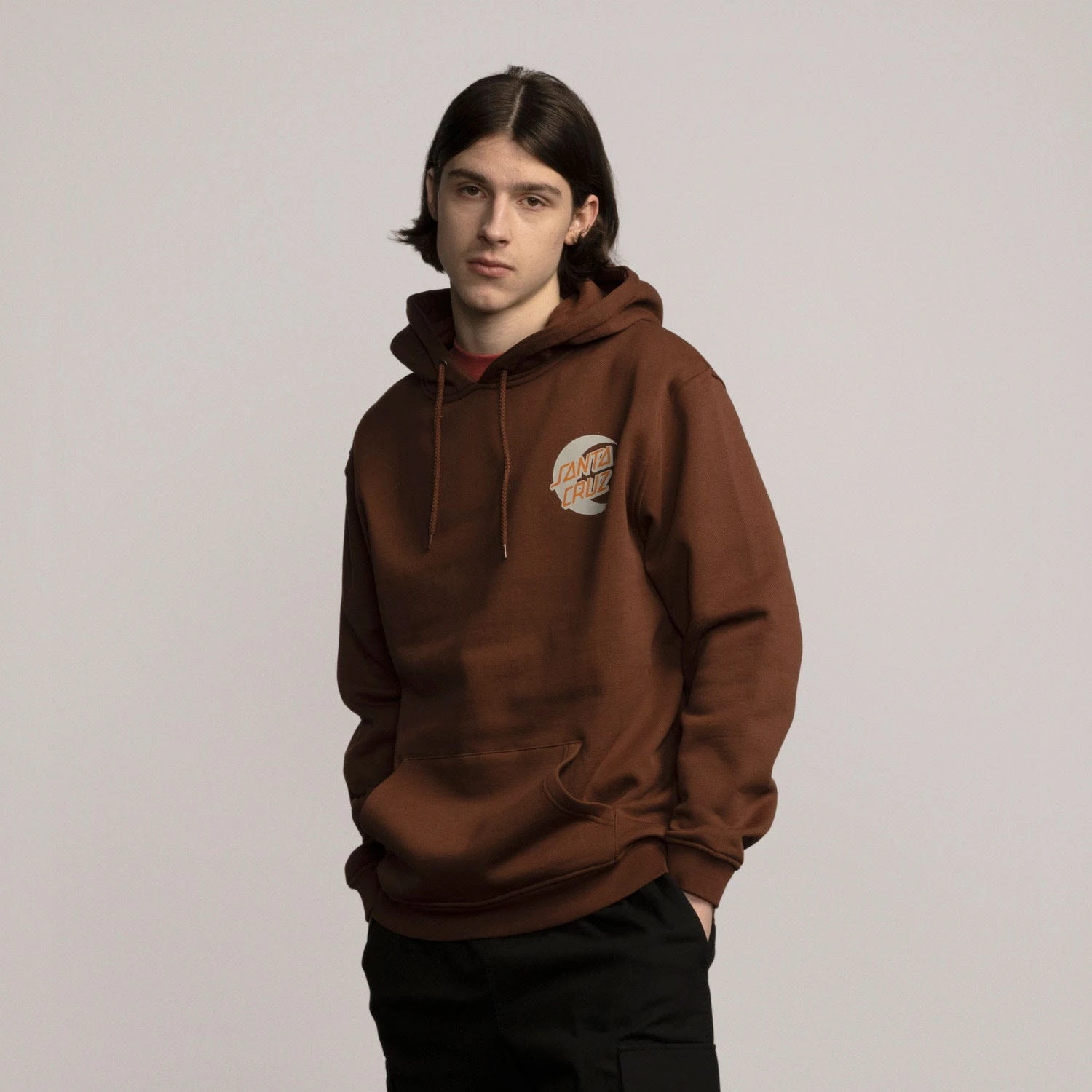 80% cotton, 20% polyester 330gsm brushed fleece, regular fit, hooded sweatshirt with pouch pocket, left chest print and back print