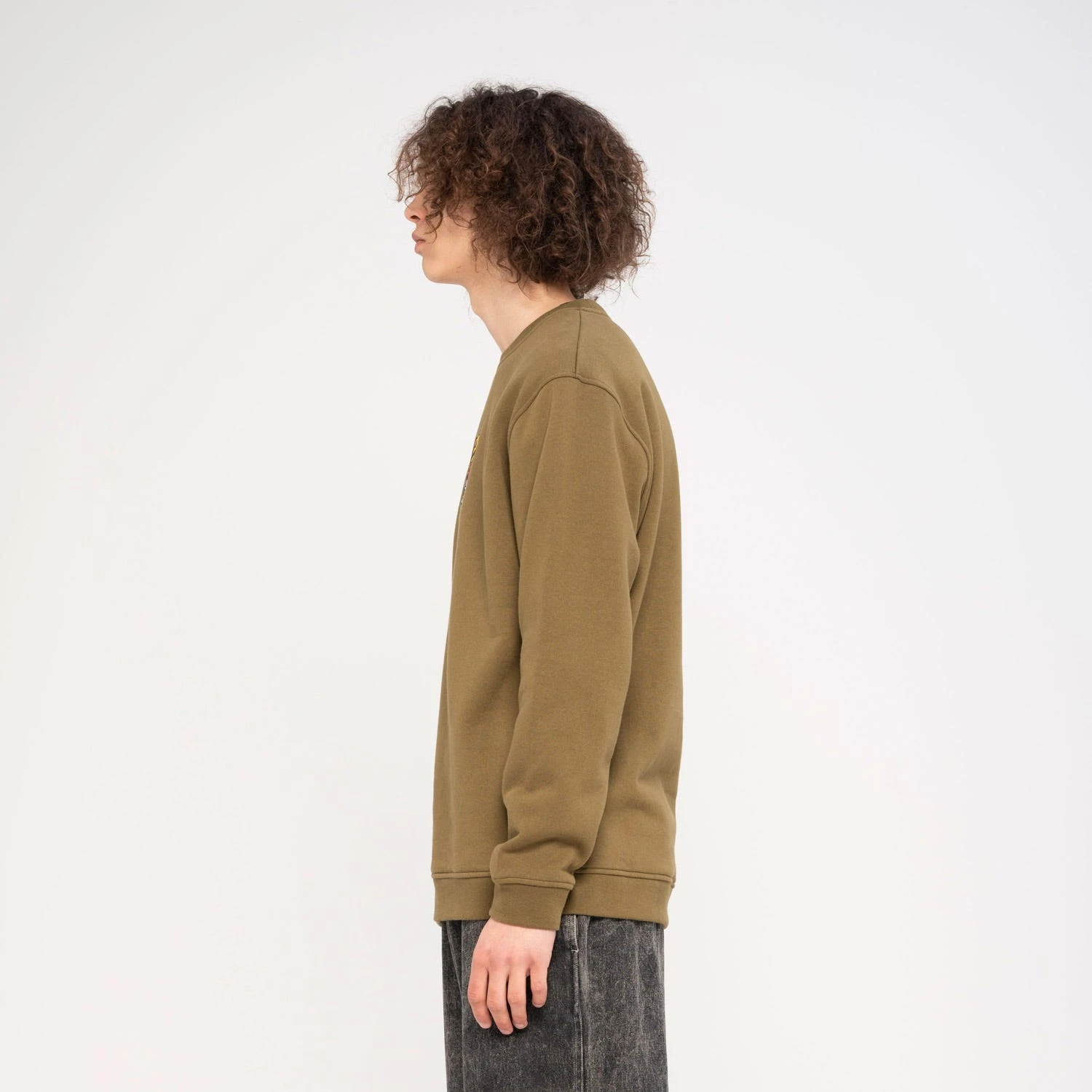 80% cotton, 20% polyester 330gsm brushed fleece, regular fit, crew sweatshirt with chest embroidery