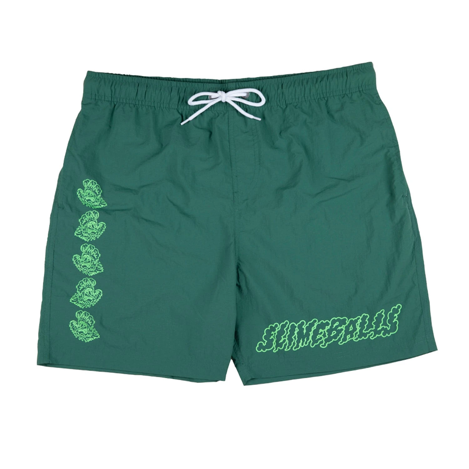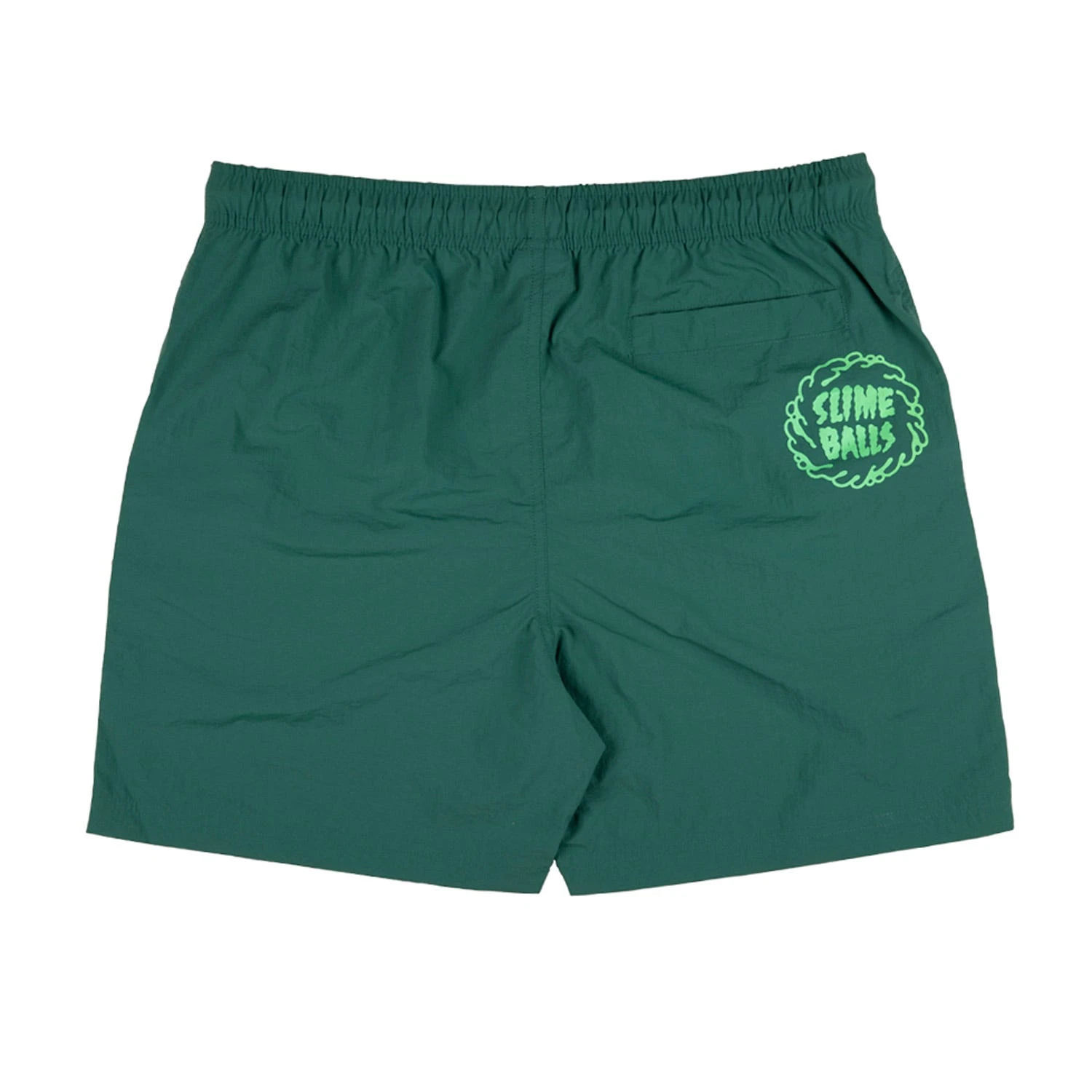 100% nylon, elasticated waist swimshort with 17″ outseam, side pockets and back pocket, print at hems and back pocket