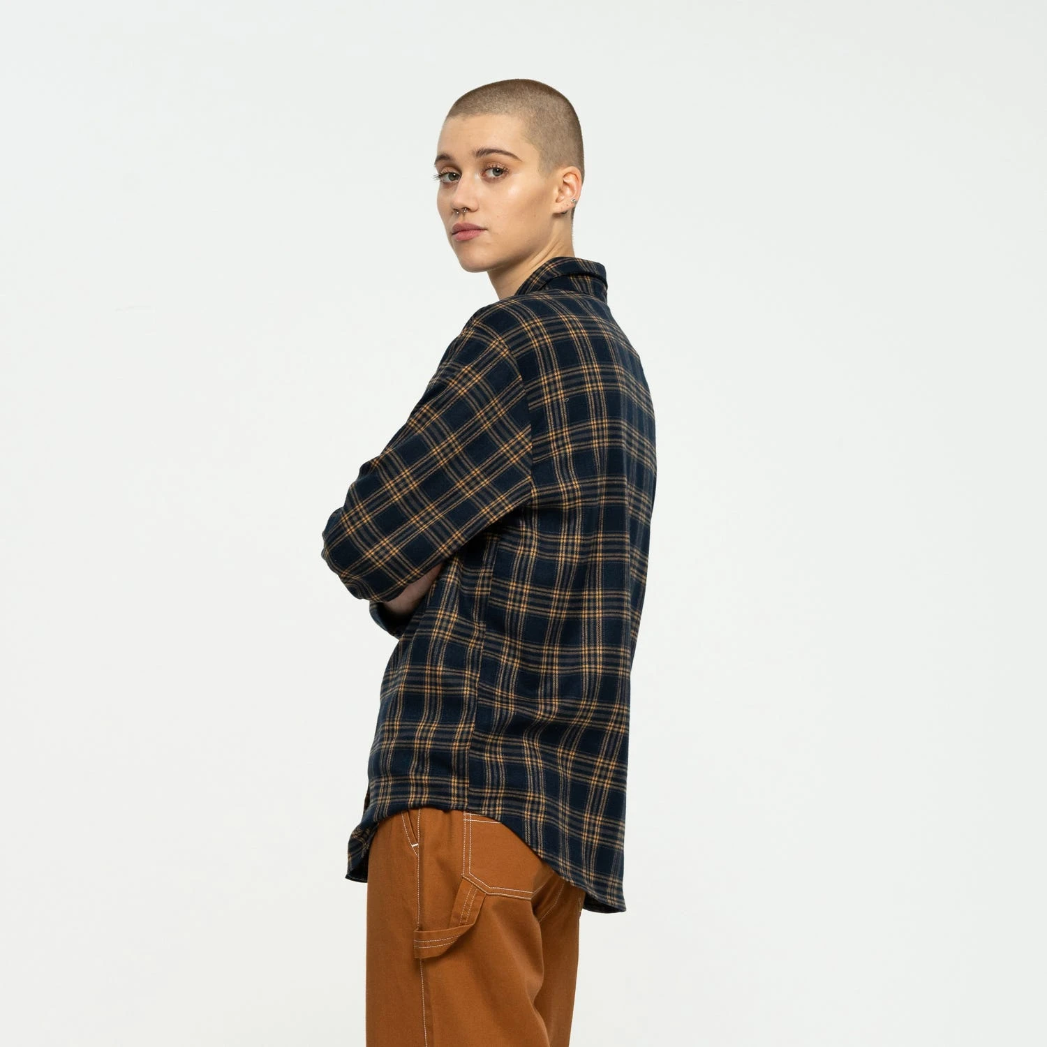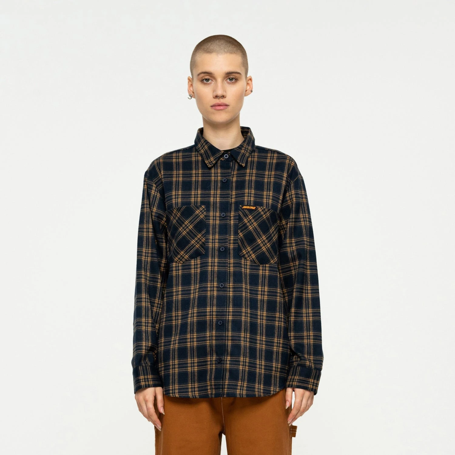 75% polyester, 20% viscose, 5% elastane, oversized fit, long sleeve shirt with chest pockets and woven label branding
