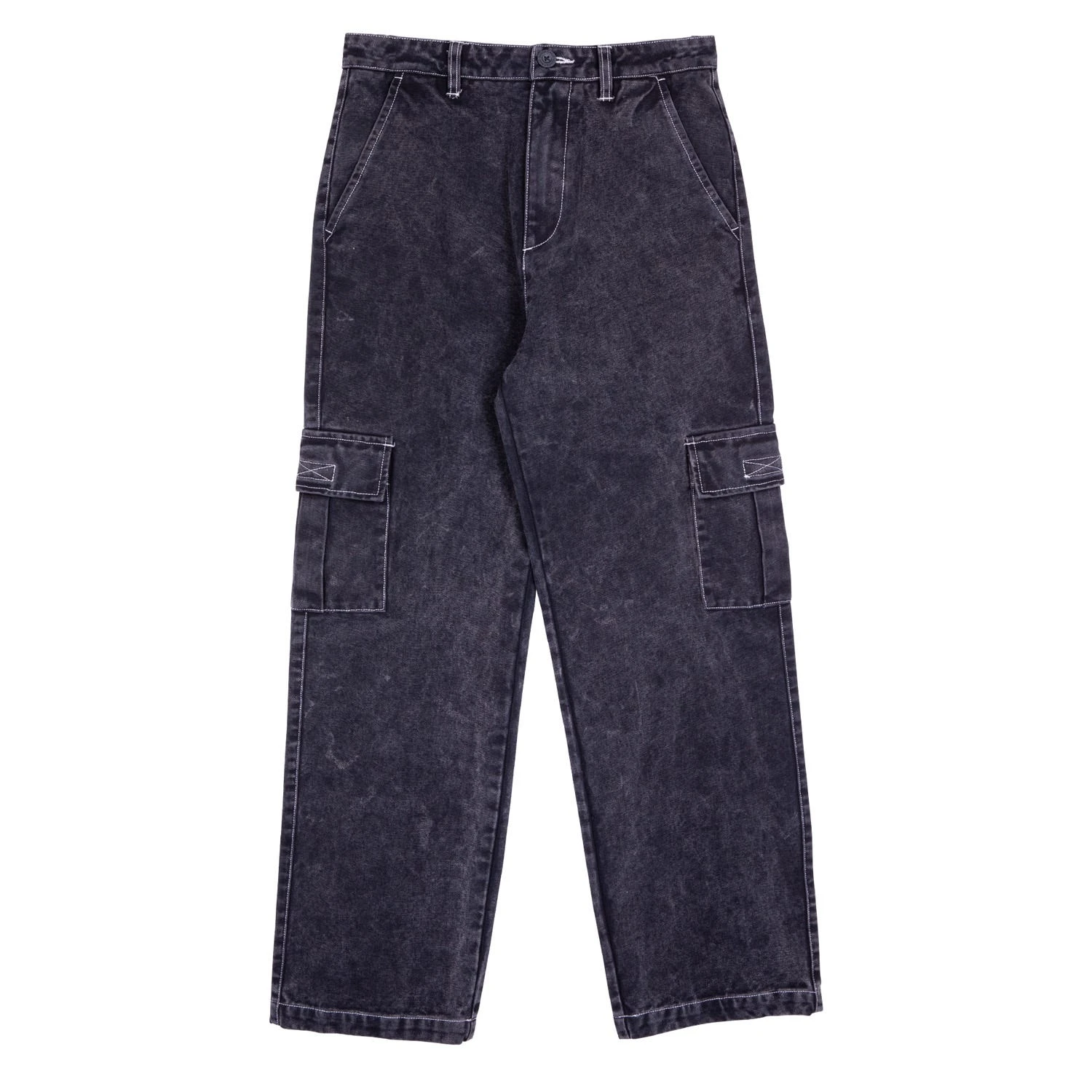 100% cotton, loose fit, wide leg pant with front pockets, back pockets, side bellows pockets and woven label branding