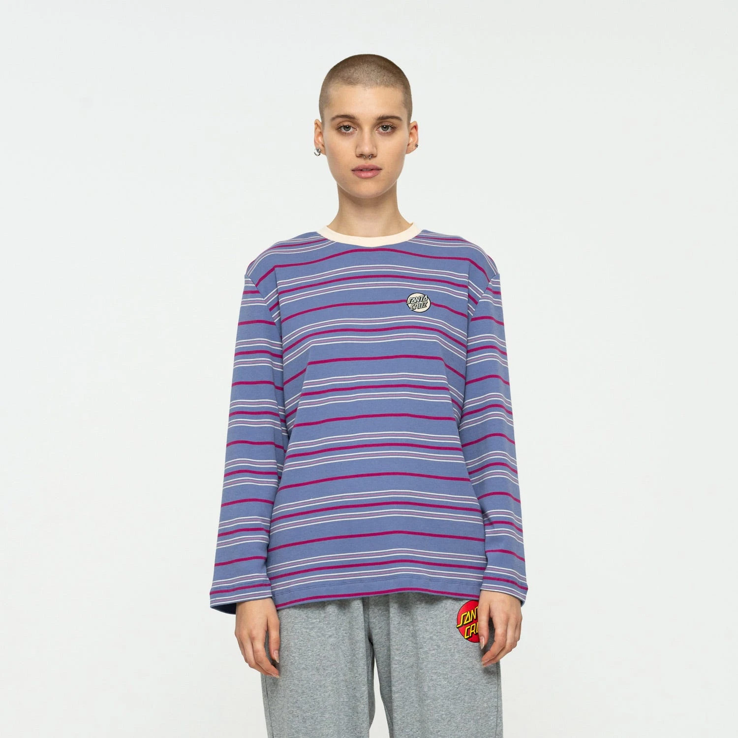 100% cotton, 180gsm interlock jersey, regular fit, long sleeve t-shirt with knitted stripe and left chest embroidery