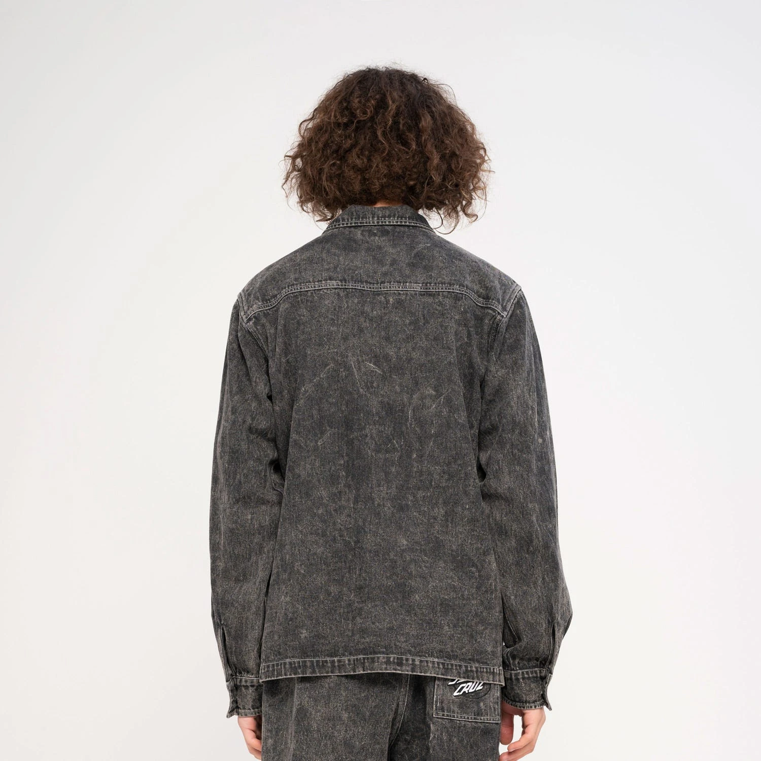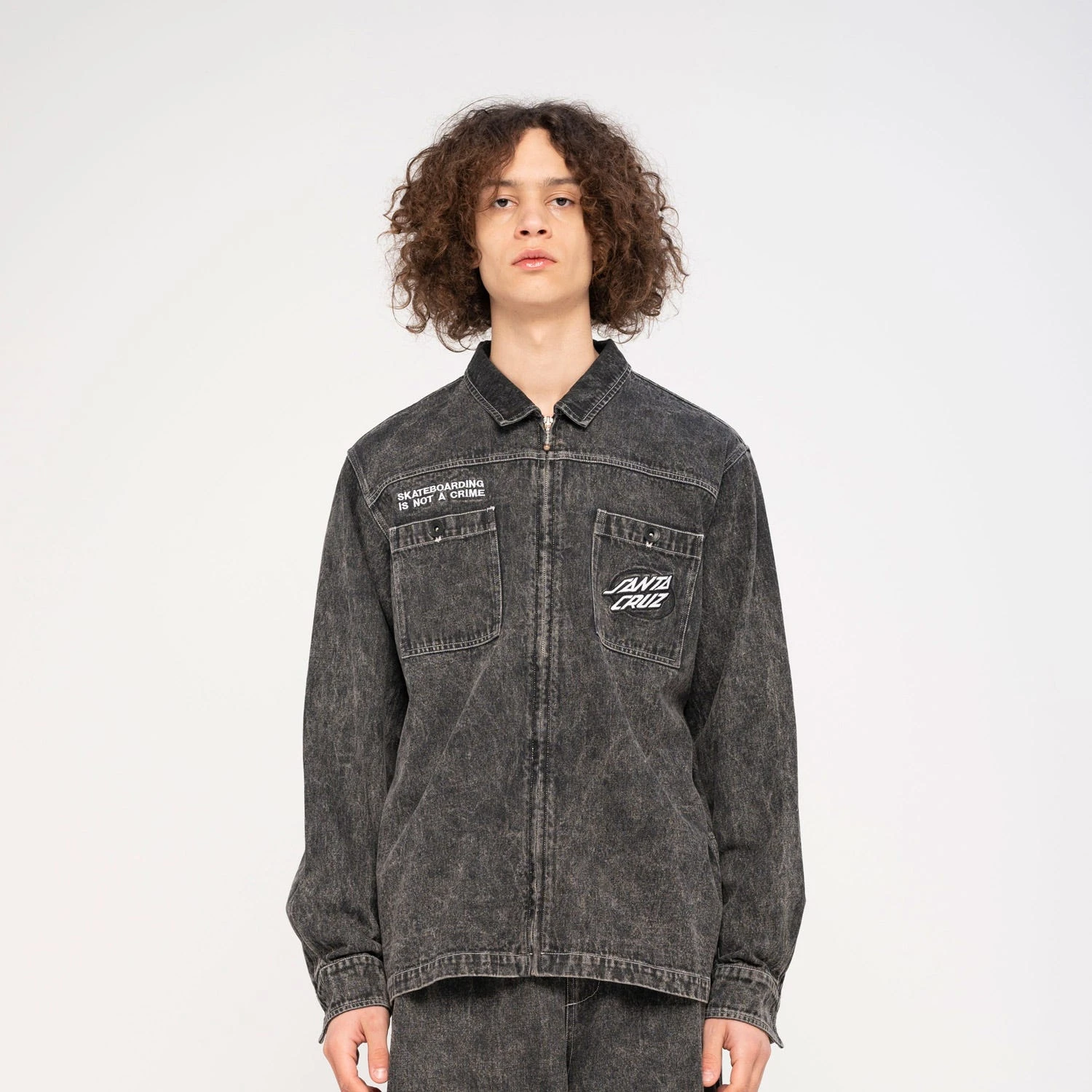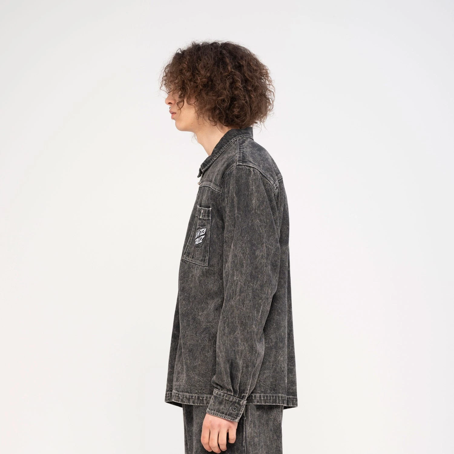 100% cotton denim, long sleeve shirt, full zip with double chest pocket, straight hem and front logo embroidery