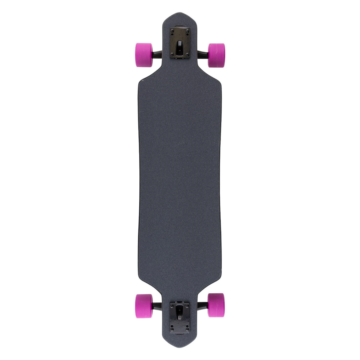 Santa Cruz Skateboards Prismatic Dot Drop Thru Longboard Cruzer featuring Spot gloss and silver rainbow prismatic foil printed graphic on medium-sized drop through shaped 9 ply deck with Bullet 180mm reverse kingpin downhill trucks and 66mm 78a Santa Cruz branded Slimeballs wheels.