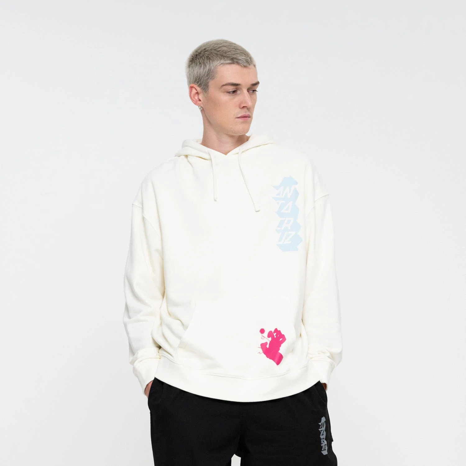 100% organic cotton, 330gsm loopback fleece, boxy fit, hooded sweatshirt with pouch pocket and print at left chest, pouch pocket and back