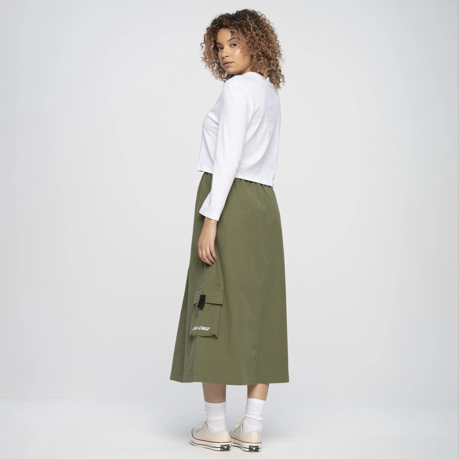 100% cotton, regular fit, high waisted cargo skirt with side pockets, adjustable woven belt at waist and pocket print