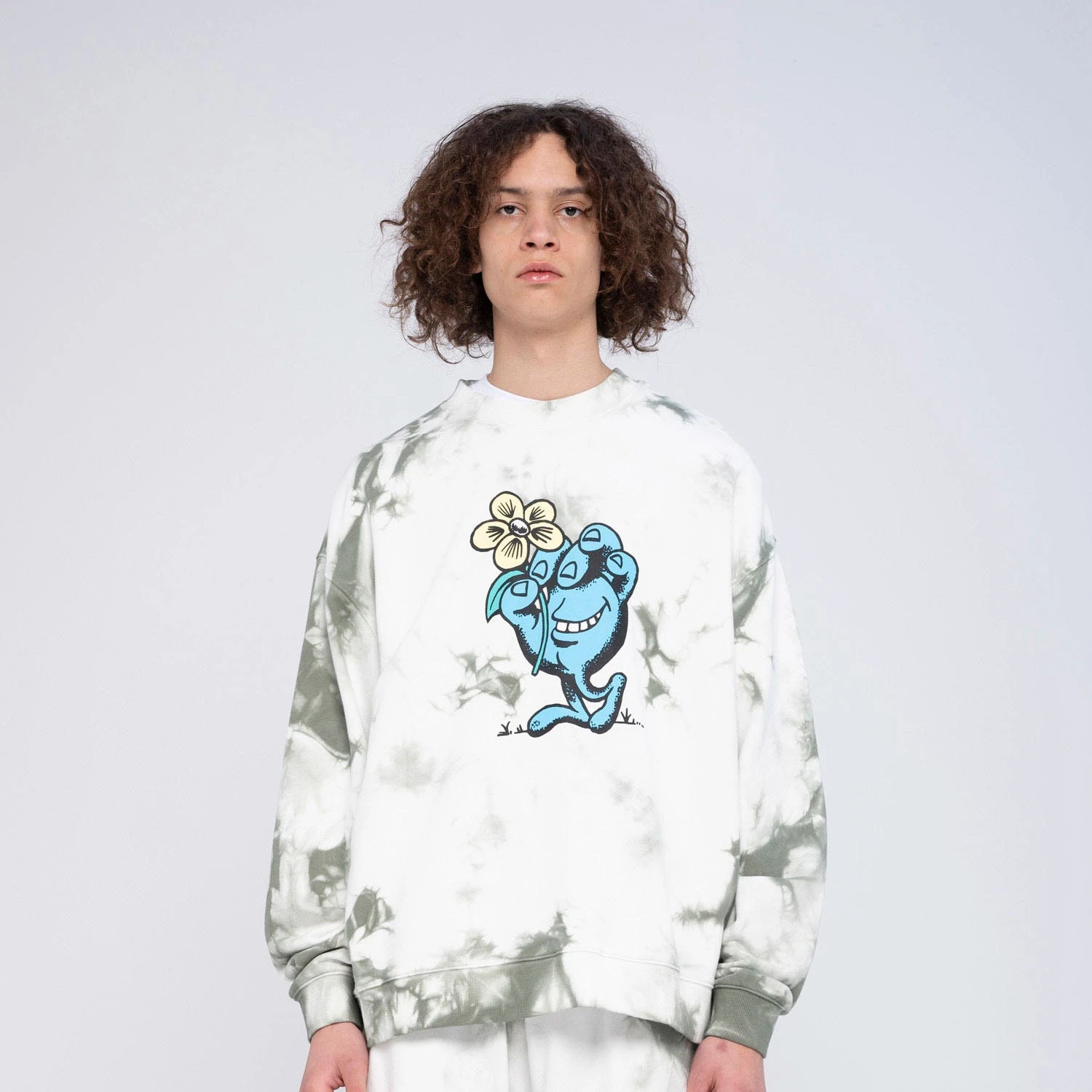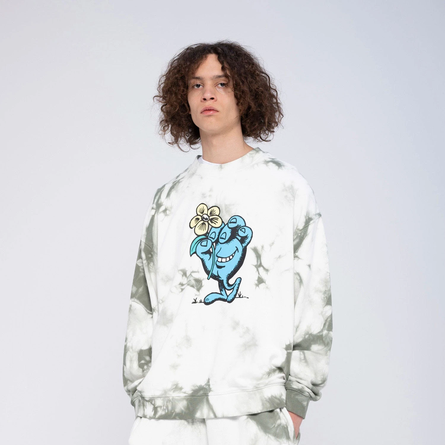 100% organic cotton, 330gsm loopback fleece, boxy fit, crew sweatshirt with front print and back print