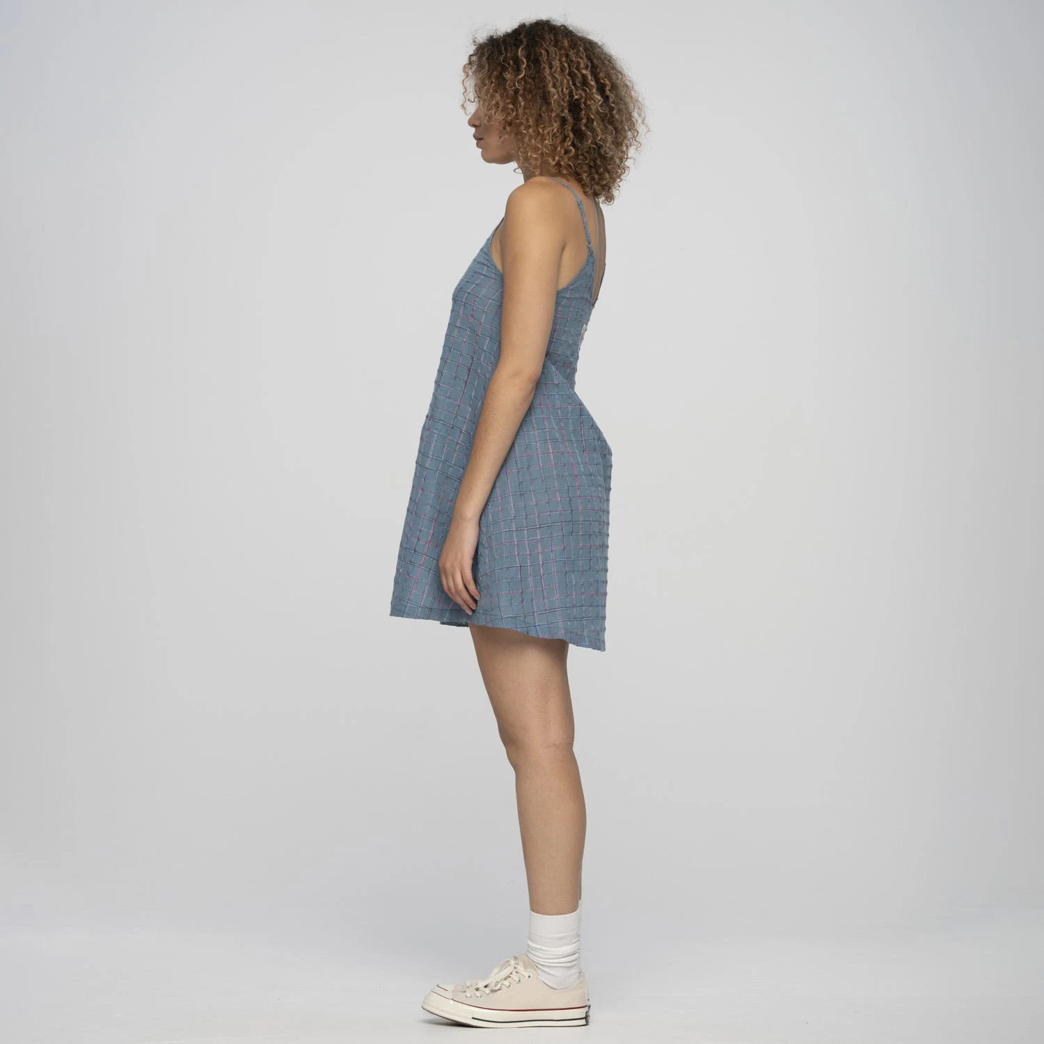 100% cotton, loose fit, skater dress, front button closure and back woven label branding