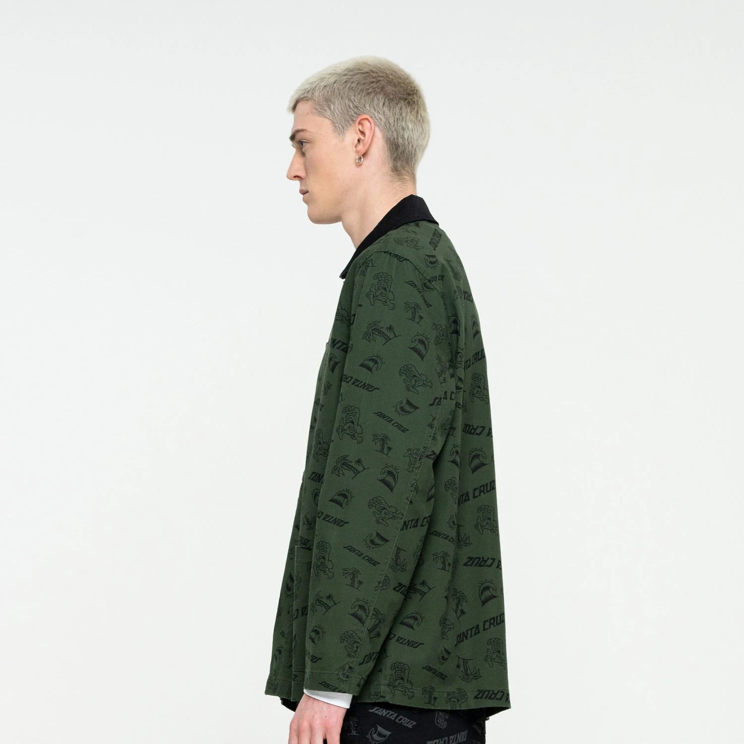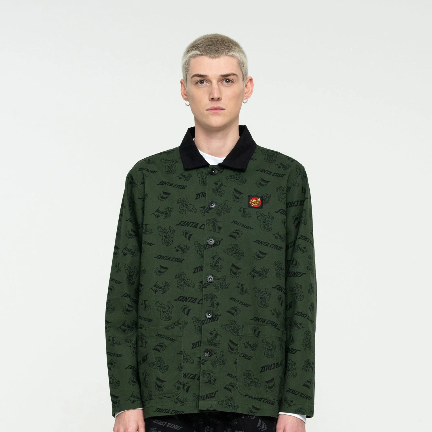 100% cotton denim/all over printed cotton twill, regular fit, chore jacket with twill collar, metal buttons and woven label branding