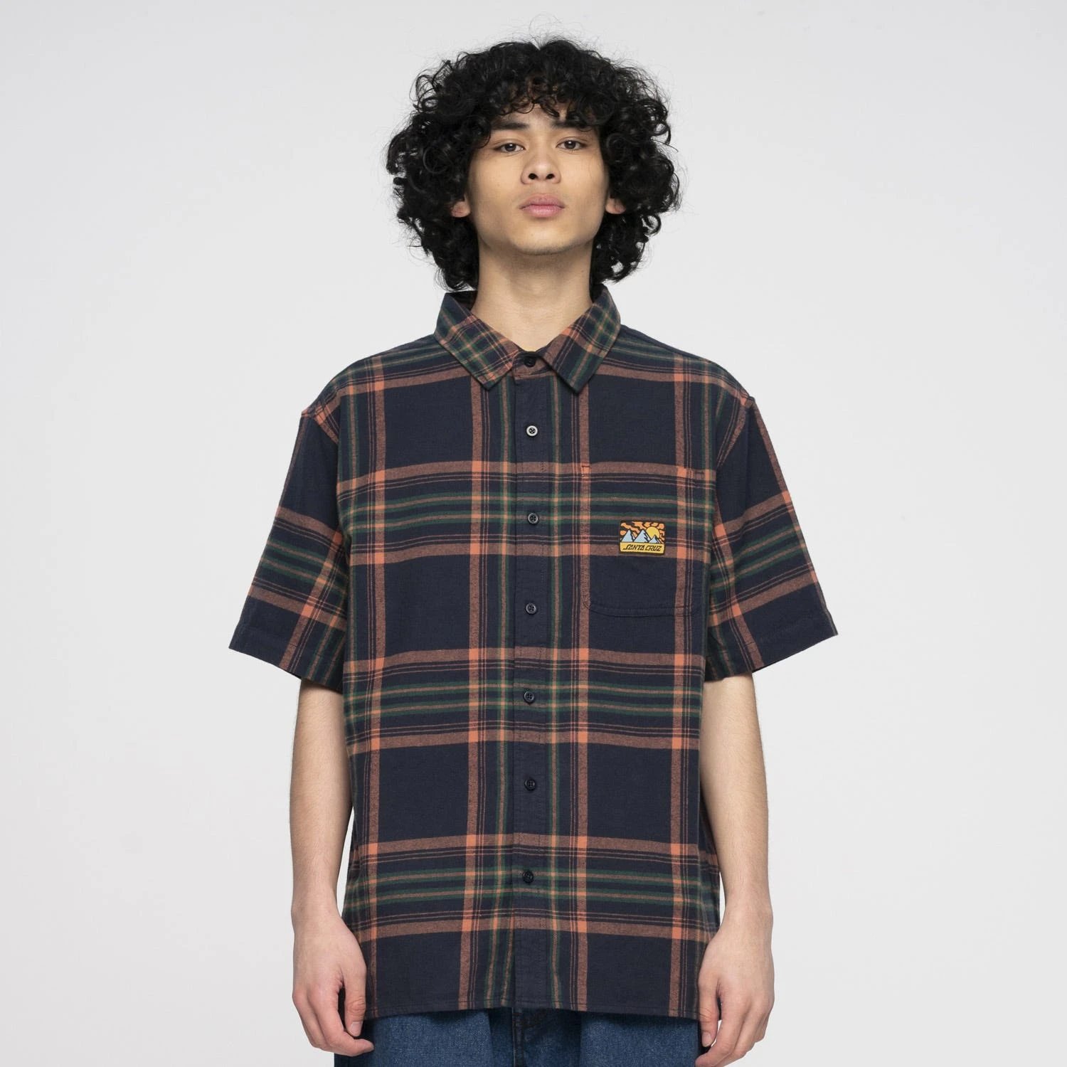 100% cotton brushed flannel/100% 6oz cotton denim, regular fit short sleeve shirt with left chest pocket, pocket woven label and front hem embroidery