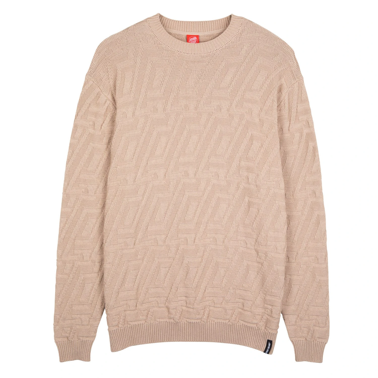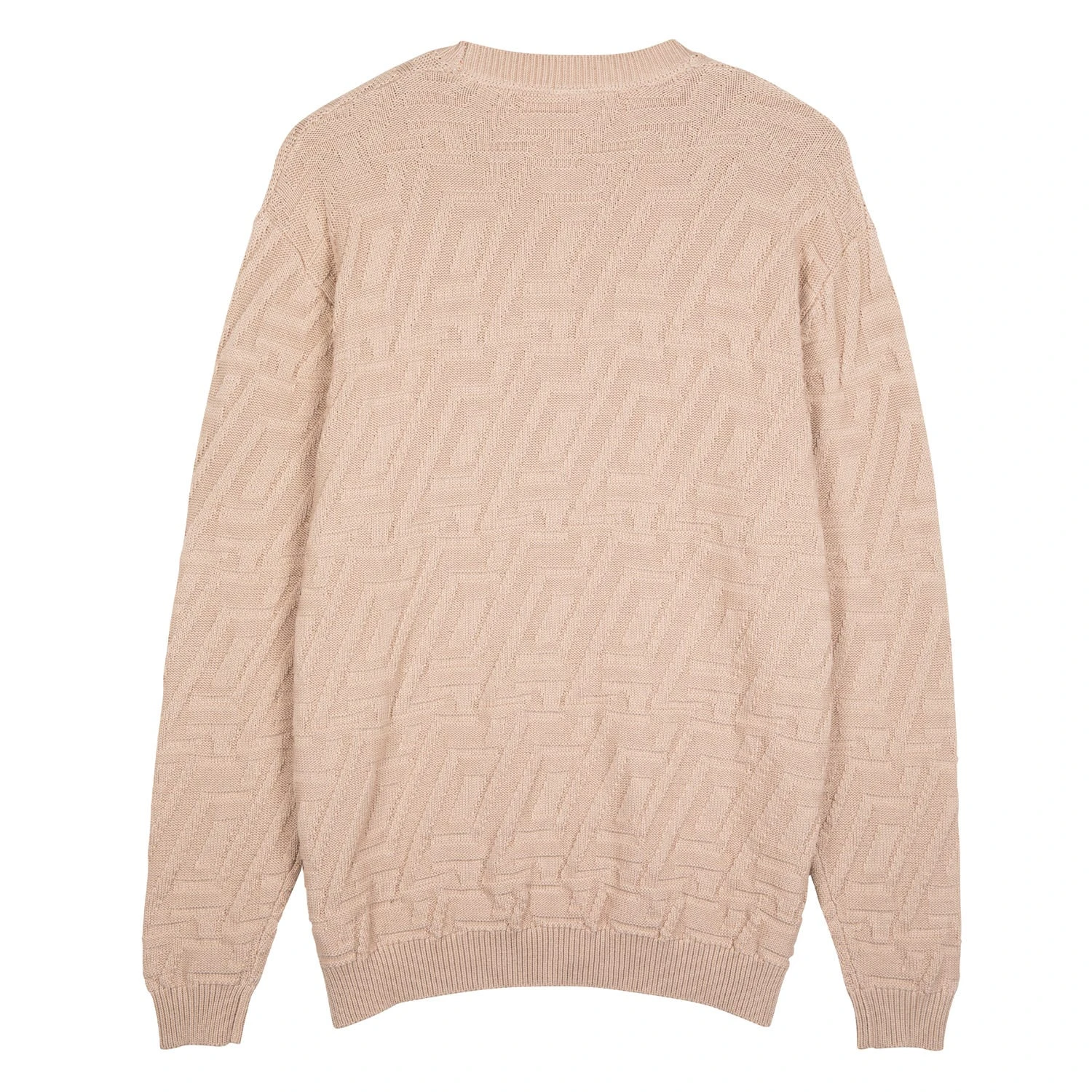 100% cotton knitted crew, regular fit, with front and back textured jacquard and hem woven label