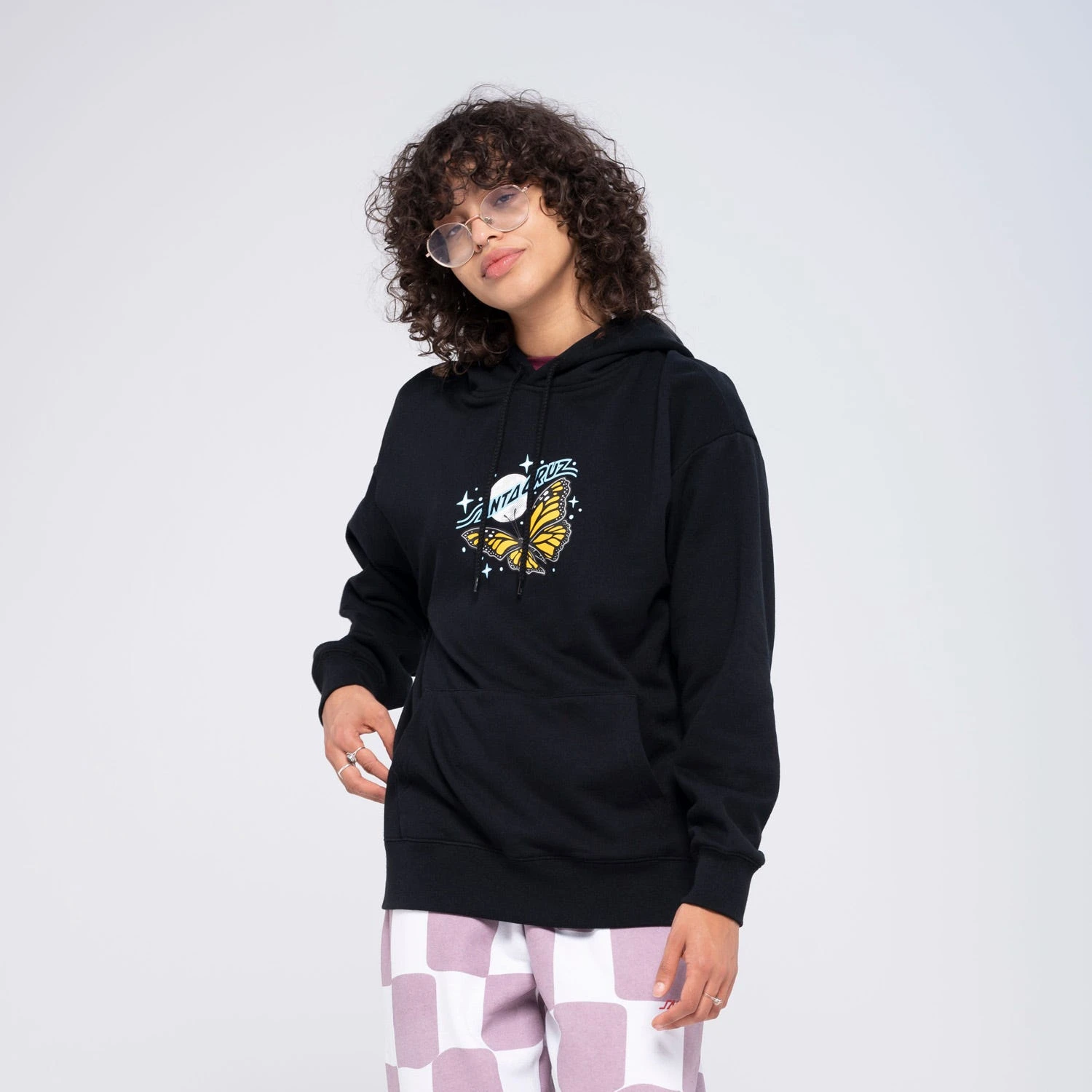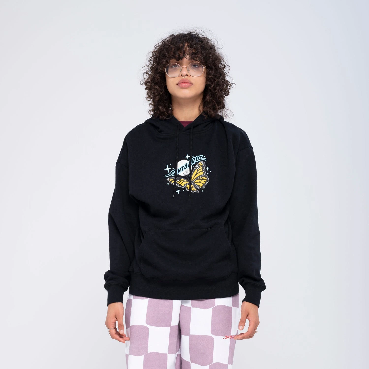 80% cotton, 20% polyester, 330gsm brushed fleece, loose fit, hooded sweatshirt with pouch pocket and front print